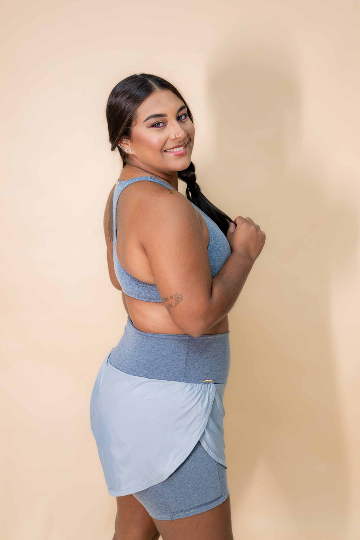 O nosso short Calmo é o equilíbrio perfeito entre leveza e segurança. Com design sobreposto, une um short interno justo com short soltinho por cima, garantindo conforto térmico, mobilidade e confiança nos movimentos. O cós alto oferece ajuste firme e confortável, enquanto o recorte externo fluido traz um toque de estilo moderno e delicado. Ideal para corrida, caminhada ou treinos ao ar livre, é o short sobreposto fitness feminino que permite você se movimentar com liberdade e beleza.